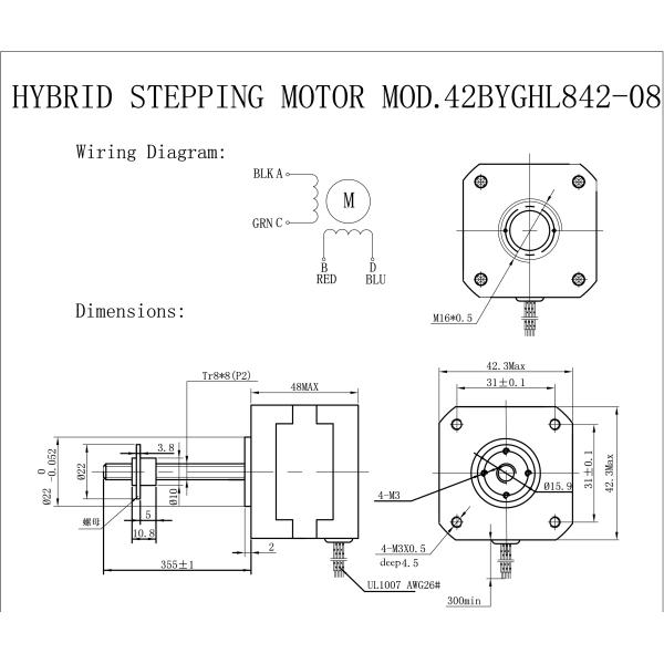 | 42BYGHL810-09 | 1.8 | 4 | 3.8 | 1.2 | 3.2 | 6.0 | 4.5 | 48 | 0.36 |