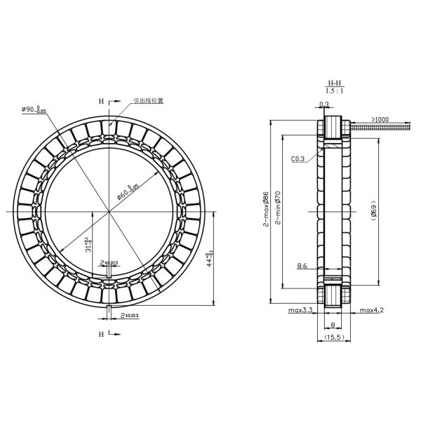 The 90 mm diameter design of the frameless torque motor is suitable for use in a wide range of demanding applications due to its compactness, efficiency, precision and reliability, meeting the needs of various industries for high performance and precision control.